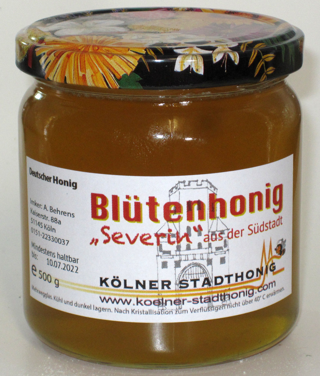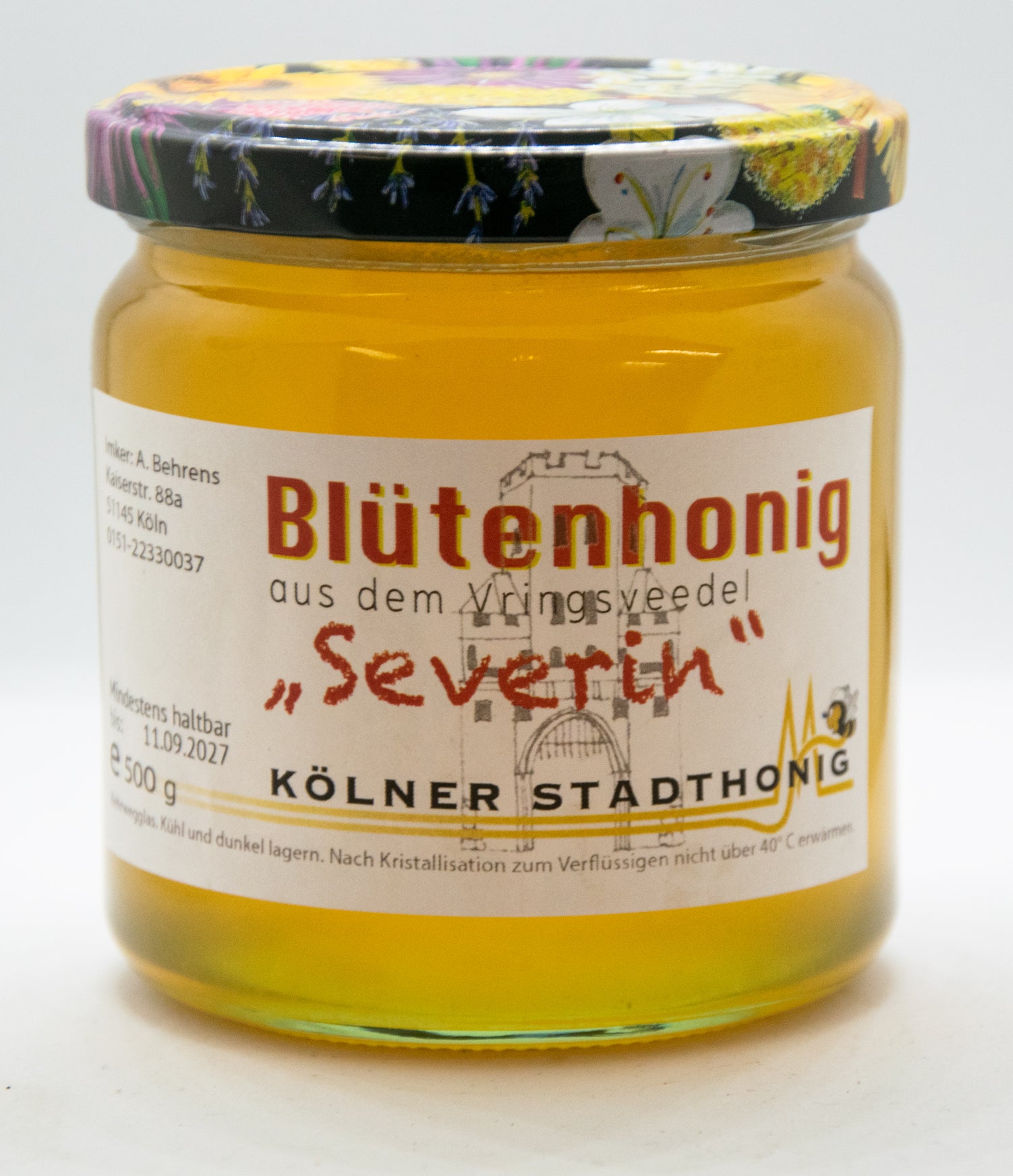 Frühtrachthonig aus dem Severinsviertel. Flüssig.